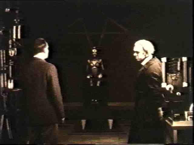 There is his creation, seated comfortably under a pentagram. (Did I mention he was an evil scientist?)